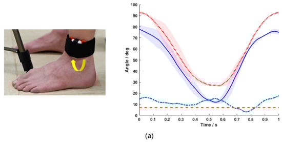 The manipulation of the BPMpathway sensor position on the transversal plane influenced the ROM data displayed by the BPMpathway (Figure 4a,b). A 45° ventral shift of the BPMpathway sensor caused significant measurement errors during the extension movement (Figure 4a). The RMSE in this task ranged from 8.3° to 13.5°.