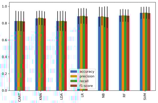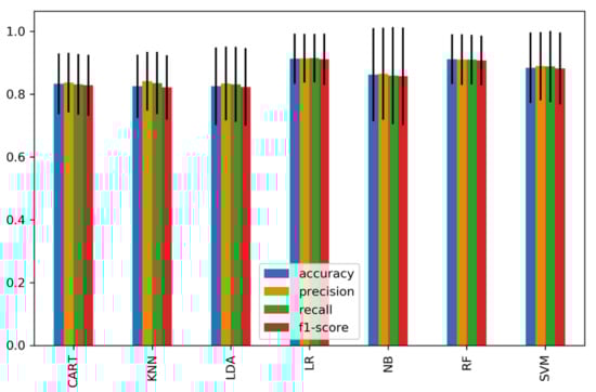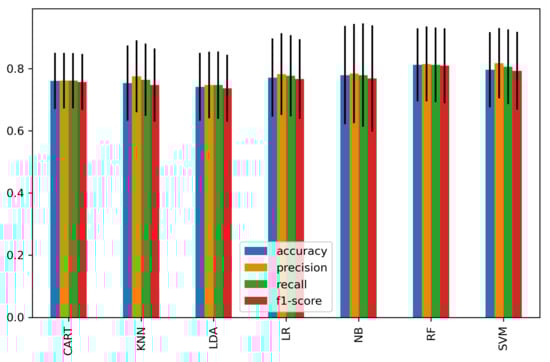 The proposed model’s performance has been evaluated using seven classifiers with 5-fold cross-validation and a four-measure matrix. These include accuracy, precision, sensitivity, and F-measure. The equations below show the mathematical formulation for each prediction. The results obtained from the confusion matrix has: