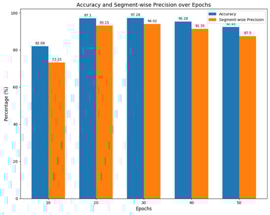 Accuracy and segment-wise precision over epochs.