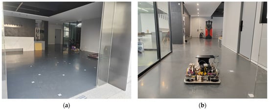 The total length of this test is 4 m, following a straight-line path. The AGV starts from rest and accelerates to a predetermined speed. A dynamic obstacle is placed 3 m ahead of the AGV, which remains in place for 4 s after the AGV starts moving before being removed. The experiment evaluates the AGV’s obstacle avoidance success rate, emergency stop avoidance rate, and travel time from the starting point to the endpoint, providing a comprehensive assessment of the practical performance of the AEB and TEB algorithms.