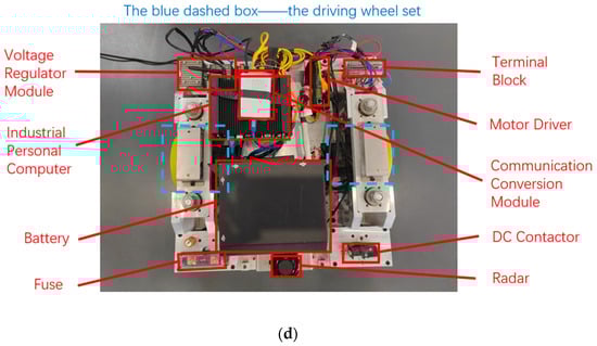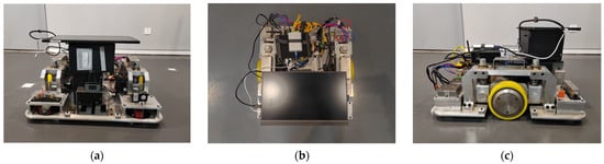 - Weckx, S.; Vandewal, B.; Rademakers, E.; Janssen, K.; Geebelen, K.; Wan, J.; Geest, R.D.; Perik, H.; Gillis, J.; Swevers, J.; et al. Open Experimental AGV Platform for Dynamic Obstacle Avoidance in Narrow Corridors. In Proceedings of the 2020 IEEE Intelligent Vehicles Symposium (IV), Las Vegas, NV, USA, 19 October–13 November 2020; pp. 844–851. [Google Scholar]