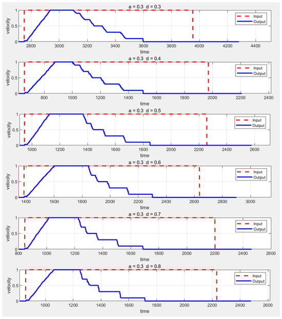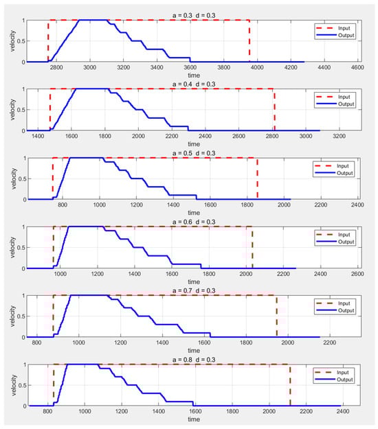 - Building upon the step-by-step deceleration mechanism of the AEB algorithm, an advanced speed smoothing algorithm was designed to ensure that the AGV’s speed transitions gradually rather than abruptly between discrete deceleration levels. This approach mitigates the impact on the system caused by sudden speed changes during stepwise deceleration.