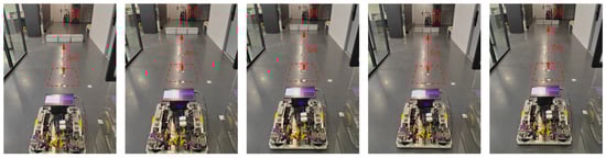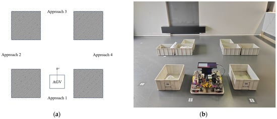The AGV is placed in a 10 m × 2 m rectangular area, with markers spaced 1 m apart, and obstacles and markers are aligned along the center, as shown in Figure 17.