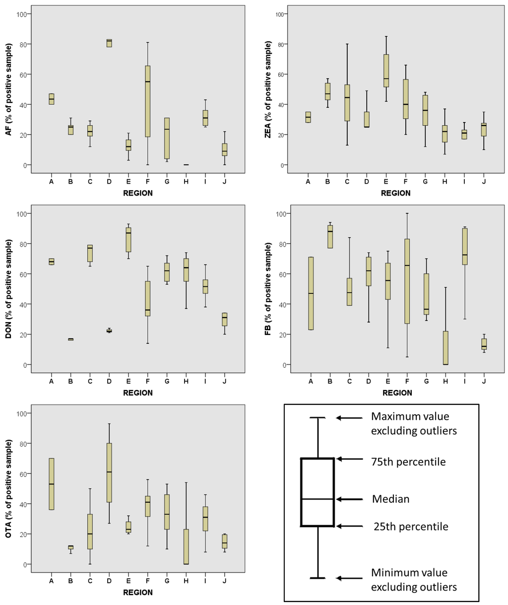 Geographical Region | AFB1 | ZEA | DON | FB1 | OTA |