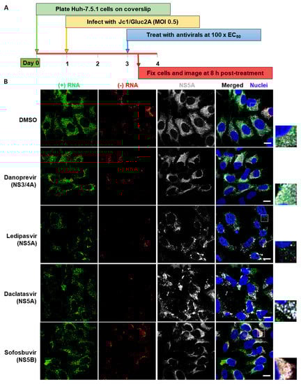 - Liu, D.; Ji, J.; Ndongwe, T.P.; Michailidis, E.; Rice, C.M.; Ralston, R.; Sarafianos, S.G. Fast hepatitis C virus RNA elimination and NS5A redistribution by NS5A inhibitors studied by a multiplex assay approach. Antimicrob. Agents Chemother. 2015, 59, 3482–3492. [Google Scholar] [CrossRef]