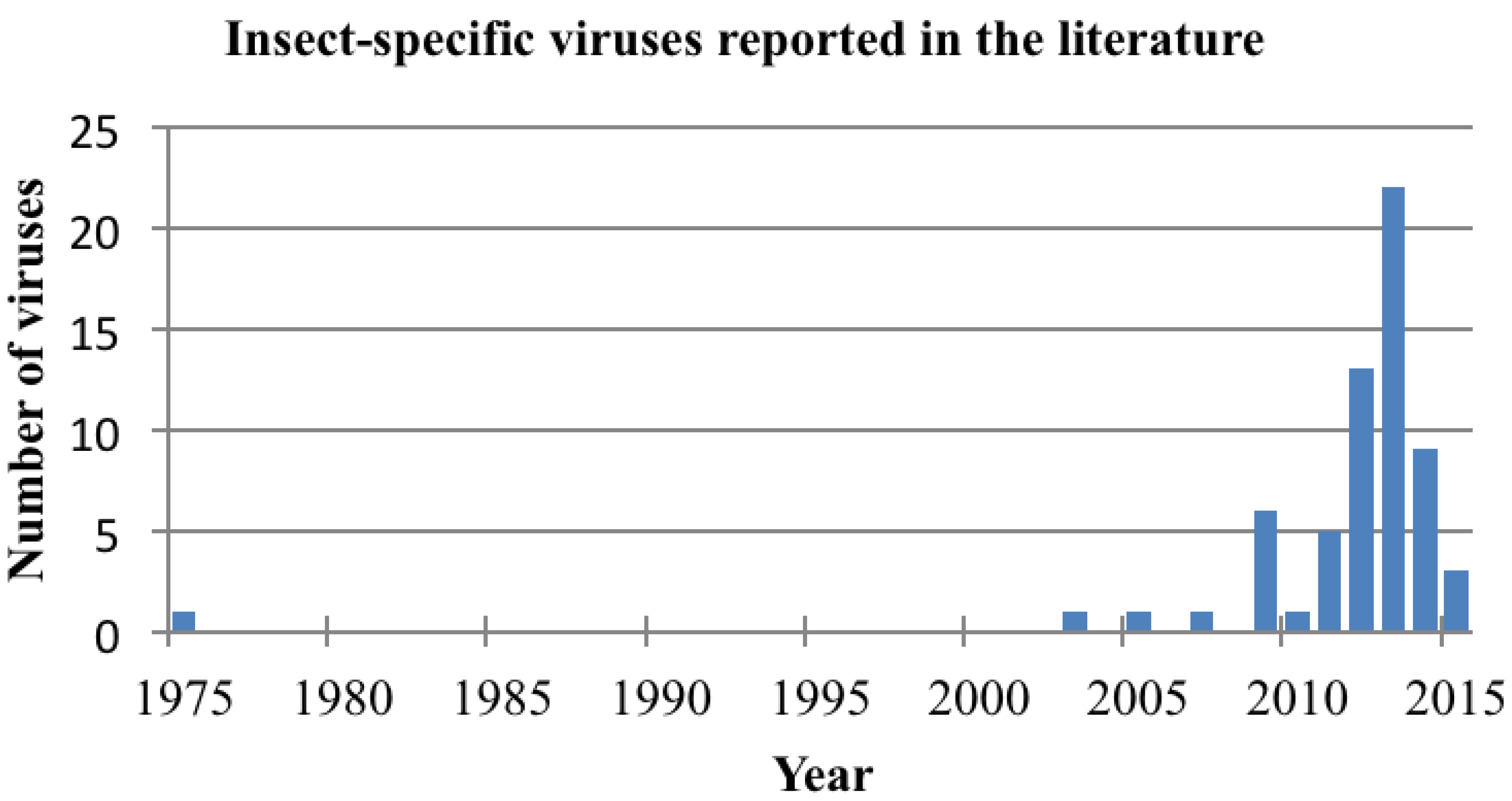 Timeline demonstrating dramatic increase in insect-specific virus discovery.