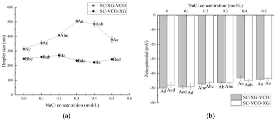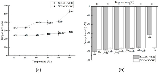 In this study, virgin coconut oil (VCO) nanoemulsions were prepared by ultrasonication using a sodium caseinate (SC) and xanthan gum (XG) complex as an emulsifier. The stability and digestion characteristics of SC/XG–VCO emulsions formed by co-adsorption and SC–VCO–XG emulsions formed by layer adsorption were compared. The stability of the two emulsions was studied under different pH, ionic strength, heat treatment, freeze–thaw cycles, and storage conditions, and the droplet size and zeta potential were used as indicators to assess the stability. In addition, the stability of oxidation and the digestive properties of both emulsions were studied. It was found that the SC–VCO–XG emulsions had better environmental stability, oxidative stability, storage stability, and digestibility compared to SC/XG–VCO emulsions. This study has shown that the formation method of protein–polysaccharide stabilized emulsions has an impact on the stability and digestibility properties of the emulsions, and that the emulsion carriers constructed by layer adsorption are more suitable for subsequent industrial production and development. Full article