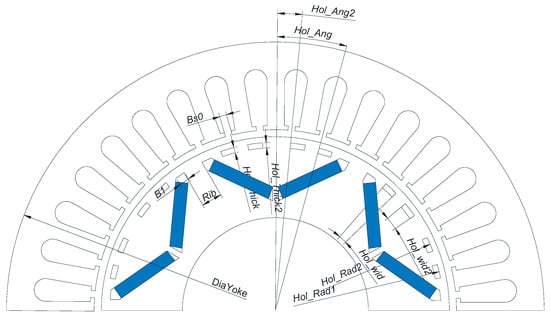 The built-in V-shaped permanent magnet motor can effectively utilize reluctance torque to improve torque density, but there is also a problem of large torque ripple causing high vibration noise. This article proposes a rotor structure with four magnetic isolation holes to reduce torque [...] Read more.