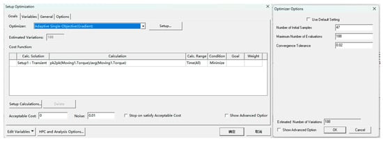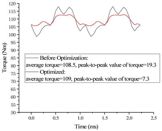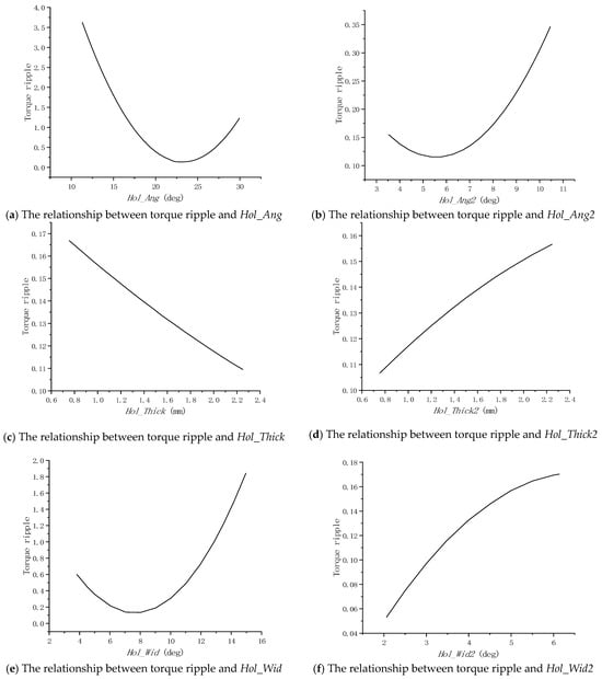 The built-in V-shaped permanent magnet motor can effectively utilize reluctance torque to improve torque density, but there is also a problem of large torque ripple causing high vibration noise. This article proposes a rotor structure with four magnetic isolation holes to reduce torque ripple in V-shaped built-in permanent magnet motors. Firstly, a finite element analysis model of the built-in V-shaped permanent magnet motor is established. The influence of slot width, rotor rib width, and magnetic bridge parameters on the torque of the permanent magnet motor was studied through parameterized scanning, and an optimization scheme was selected. Then, the position and size of the magnetic hole were optimized through an adaptive single-objective algorithm. Compared with the ordinary built-in V-shaped structure, the torque ripple of the built-in V-shaped permanent magnet motor with four magnetic isolation holes is reduced from 17.7% to 6.7%. The proposed internal V-shaped rotor structure with magnetic isolation holes and the optimization method can effectively reduce torque ripple, thus effectively solving the problem of vibration noise caused by torque ripple. Full article