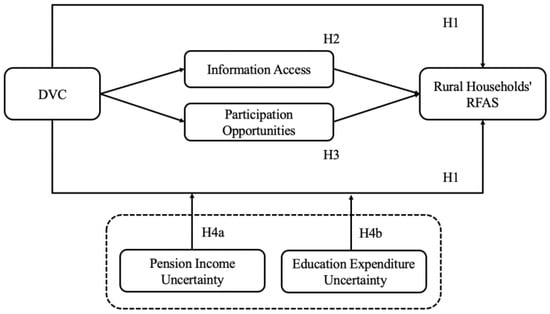 Rural households’ risky financial asset selection (RFAS) is the foundation of households’ diversified asset allocation, which in turn helps expand their sources of property income. However, rural households rarely participate in risky financial markets due to limited participation access and a lack of financial knowledge and market information. Digital Village Construction (DVC) has brought new opportunities for a change in this phenomenon. This study determines the impact of DVC on RFAS using data on 5593 rural households from the 2020 China Family Panel Studies and County Digital Village Index. The findings show that DVC significantly increases the likelihood, amount, and rate of rural households’ RFAS. However, the impact of DVC varies across its different dimensions. Specifically, the development of digital infrastructure, digital economy, and digital lifestyles each exerts a significant positive effect on RFAS, whereas digital governance does not show a statistically significant impact—likely due to the underdevelopment or inefficiencies of current digital governance platforms. Mechanism analyses reveal that DVC promotes rural households’ RFAS by improving farmers’ access to information and expanding their market participation opportunities, while rural households’ education expenditure and pension income uncertainties weaken this positive effect. Heterogeneity analyses suggest that the impact of DVC on rural households’ RFAS is more pronounced among young families, those with lower education levels, and high-income families. With the projected advancement of digital villages in China, this study offers crucial guidance for implementing policies, such as the Digital Village Construction Guidelines, by guiding rural households toward more rational and inclusive participation in risky financial markets. Full article