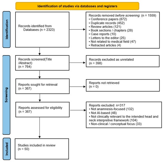 Objectives: To synthesize evidence on artificial intelligence (AI)-enabled medical history taking (anamnesis)—beyond large language models (LLMs) alone—and to translate findings into implications and research priorities for head and neck surgery. Methods: We performed a PRISMA-informed narrative review. Searches from database inception [...] Read more.