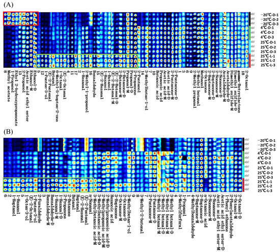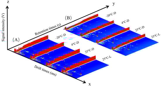Royal jelly, a nutrient-rich bee product characterized by high water content and active components, is particularly susceptible to quality deterioration during storage. While temperature effects have been extensively documented, the specific role of light exposure in quality degradation remains largely unexplored. despite its relevance during production, handling, transportation, and display. This study systematically investigated the volatile organic compounds (VOCs) of royal jelly under different storage conditions using gas chromatography-ion mobility spectrometry (GC-IMS) combined with fingerprint analysis. Results from dual-column validation demonstrated that even short-term light exposure at 25 °C induced pronounced alterations in VOC profiles, triggering the accumulation of off-flavor aldehydes (e.g., hexanal, nonanal) and ketones, along with 2-furfural generated via Maillard reaction. Concurrently, characteristic fresh-aroma esters and alcohols were significantly depleted. Multivariate statistical analysis confirmed light exposure as the predominant factor driving quality deterioration, with temperature variation under dark conditions producing comparatively minor effects within the same short timeframe. This work provides the first systematic evidence establishing insights into early volatile changes in royal jelly and identifies key VOC markers that offer valuable insights for optimizing storage strategies and developing rapid quality monitoring protocols. Full article