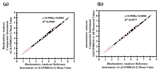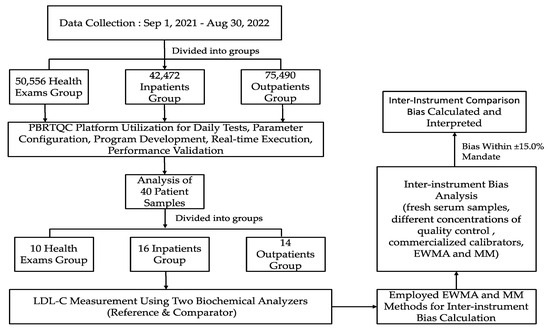 Background: Patient-based real-time quality control (PBRTQC) can be a valuable tool in clinical laboratories due to its cost-effectiveness and constant monitoring. More focus is placed on discovering and improving algorithms that compliment conventional internal control techniques. The practical implementation of PBRTQC with a biochemical instrument comparison is lacking. We aim to evaluate PBRTQC’s efficacy and practicality by comparing low-density lipoprotein cholesterol (LDL-C) test results to ensure consistent real-time monitoring across biochemical instrumentations in clinical laboratories. Method: From 1 September 2021 to 30 August 2022, the First Affiliated Hospital of Xi’an Jiaotong University collected data from 158,259 both healthy and diseased patients, including 84,187 male and 74,072 female patients, and examined their LDL-C results. This dataset encompassed a group comprising 50,556 individuals undergoing health examinations, a group comprising 42,472 inpatients (IP), and a group comprising 75,490 outpatients (OP) for the PBRTQC intelligent monitoring platform to conduct daily tests, parameter configuration, program development, real-time execution, and performance validation of the patients’ data. Moreover 40 patients’ LDL-C levels were assessed using two biochemical analyzers, designated as the reference and comparator instruments. A total of 160 LDL-C results were obtained from 40 both healthy and diseased patients, including 14 OP, 16 IP, and 10 health examination attendees, who were selected to represent LDL-C levels broadly. Two biochemical instruments measured LDL-C measurements from the same individuals to investigate consistency and reproducibility across patient statuses and settings. We employed exponentially weighted moving average (EWMA) and moving median (MM) methods to calculate inter-instrument bias and ensure analytical accuracy. Inter-instrument bias for LDL-C measurements was determined by analyzing fresh serum samples, different concentrations of quality control (QC), and commercialized calibrators, employing both EWMA and MM within two assay systems. The assessment of inter-instrumental bias with five different methods adhered to the external quality assessment standards of the Clinical Laboratory Center of the Health Planning Commission, which mandates a bias within ±15.0%. Result: We calculated inter-instrument comparison bias with each of the five methods based on patient big data. The comparison of fresh serum samples, different concentrations of QC, commercialized calibrators, and EWMA were all in the permissive range, except for MM. MM showed that the bias between two biochemical instruments in the concentration ranges of 1.5 mmoL/L–6.2 mmoL/L exceeded the permissible range. This was mainly due to the small number of specimens, affected by variations among individual patients, leading to increased false alarms and reduced effectiveness in monitoring the consistency of the inter-instrumental results. Moreover, the inter-comparison bias derived from EWMA was less than 3.01%, meeting the 15% range assessment criteria. The bias result for MM was lower than 24.66%, which was much higher than EWMA. Thus, EWMA is better than MM for monitoring inter-instrument comparability. PBRTQC can complement the use of inter-comparison bias between biochemical analyzers. EWMA has comparable inter-instrument comparability monitoring efficacy. Conclusions: The utilization of AI-based PBRTQC enables the automated real-time comparison of test results across different biochemical instruments, leading to a reduction in laboratory operating costs, enhanced work efficiency, and improved QC. This advanced technology facilitates seamless data integration and analysis, ultimately contributing to a more streamlined and efficient laboratory workflow in the biomedical field.