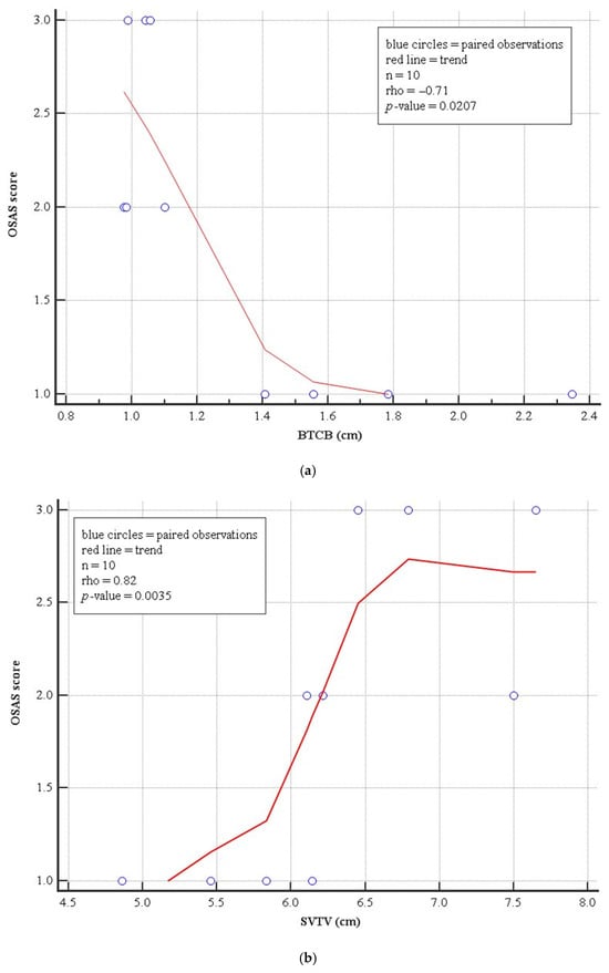 Background/Objectives: Obstructive sleep apnea (OSA) is increasingly observed in patients undergoing supracricoid laryngeal surgery; however, the impact of postoperative anatomical changes on sleep-disordered breathing remains insufficiently characterized. This pilot study aimed to assess the incidence and severity of OSA after Open Partial Horizontal Laryngectomy type II (OPHL II) and to evaluate correlations between polysomnographic parameters and radiologic measurements of the neolarynx. Methods: A prospective observational cohort study was conducted on ten patients who underwent OPHL II between 2019 and 2024 and were evaluated at least one year postoperatively. The sample size was determined using a conservative estimate appropriate for a pilot prospective study, which required a long postoperative follow-up period of at least one year. All patients completed Stop-Bang, Berlin, and Epworth questionnaires and underwent overnight polysomnography. Cervical CT scans were used to measure airway length to the vocal cords (ALVC), supralaryngeal tract horizontal (SVTH) and vertical (SVTV) segments, and the base-of-tongue–to–cervical-body distance (BTCB). Results: OSA was detected in all patients: 40% mild, 30% moderate, and 30% severe. Mean AHI was 25.5 ± 18.9 events/h, and OSA severity strongly correlated with AHI (rho = 0.94; p < 0.0001). Among radiologic parameters, SVTV showed a positive correlation with OSA severity (rho = 0.82; p = 0.0035), while BTCB demonstrated a significant negative correlation (rho = −0.71; p = 0.0207). No significant associations were found for ALVC or SVTH. Conclusions: Supracricoid laryngectomy produces anatomical changes that predispose patients to OSA. Radiologic metrics—particularly SVTV and BTCB—appear to be meaningful predictors of OSA severity. A multidisciplinary approach is essential for early diagnosis and management. Due to the small number of patients enrolled larger multicenter studies are needed to confirm these findings and define radiologic criteria associated with postoperative OSA. Full article