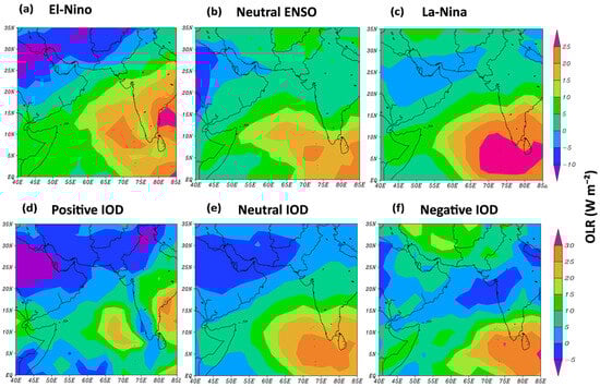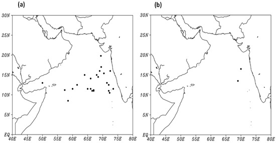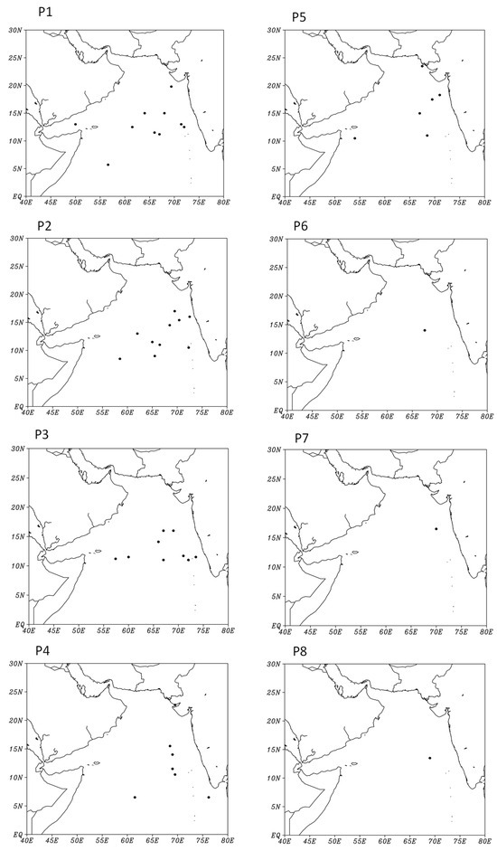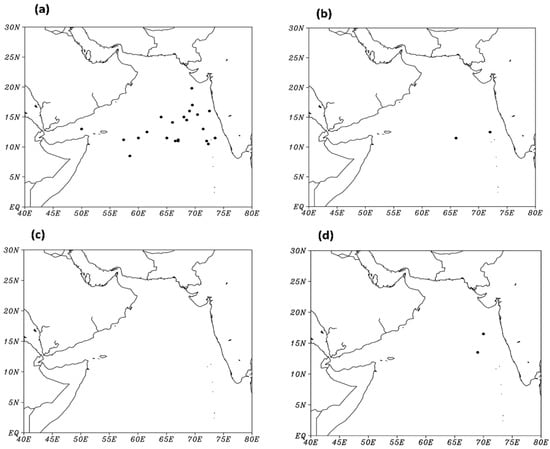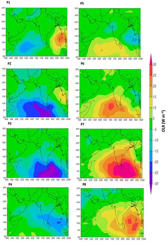 The frequency and intensity of tropical cyclones (TCs) in the Arabian Sea have increased in recent decades, heightening concerns regarding regional vulnerability and forecasting difficulties. This study examines the impact of the Madden–Julian Oscillation (MJO) on TCs activity—formation, frequency, and severity—over the Arabian Sea from 1982 to 2021. This study analyzes variations in convection, vertical wind shear (VWS), sea level pressure (SLP), and relative humidity (RH) across different MJO phases utilizing the best-track data from the India Meteorological Department (IMD), the Real-Time Multivariate MJO (RMM) index, and reanalysis datasets from the National Oceanic and Atmospheric Administration (NOAA) and the National Centers for Environmental Prediction–National Center for Atmospheric Research (NCEP–NCAR). Results show that more than 80% of TCs form during the convectively active phases of the MJO (P1–P4). These phases have the most noticeable negative outgoing longwave radiation (OLR) anomalies, as well as higher mid-level moisture and low-pressure anomalies, which are good for cyclogenesis. On the other hand, suppressed phases (P6–P8) have positive outgoing longwave radiation, dry air in the middle troposphere, and high-pressure anomalies, which make it harder for TCs to form. While VWS is predominantly favorable during both active and inactive phases, thermodynamic and convective factors principally regulate the modulation of TC activity. The simultaneous presence of active MJO phases with positive Indian Ocean Dipole (pIOD) and neutral or El Niño conditions markedly increases TC frequency, highlighting a combined influence link between interannual–El Niño–Southern Oscillation (ENSO) and IOD– and intraseasonal (MJO) variability. Additionally, the association between MJO and the Indo-Pacific Warm Pool (IPWP) reveals that TC activity peaks during convectively active MJO phases under the second twenty years of this study, emphasizing the influence of large-scale oceanic warming on TC variability. These findings underscore the critical function of the MJO in regulating TC activity variability in the Arabian Sea and stress its significance for enhancing intraseasonal forecasting and disaster preparedness in the area. Full article