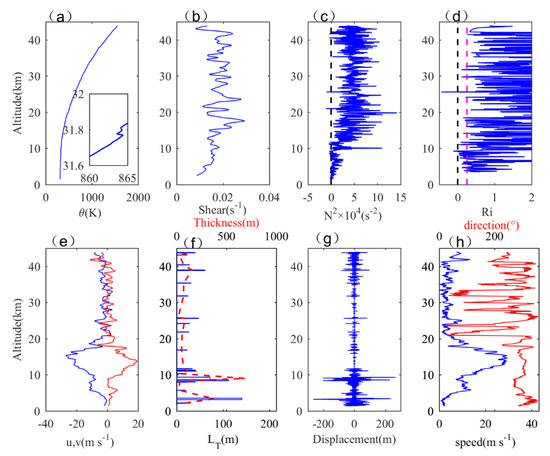 In recent years, Thorpe analysis has been used to retrieve the characteristics of turbulence in free atmosphere from balloon-borne sensor data. However, previous studies have mainly focused on the mid-high latitude region, and this method is still rarely applied at heights above 30 km, especially above 35 km. Therefore, seven sets of upper air (>35 km) sounding data from the Changsha Sounding Station (28°12′ N, 113°05′ E), China are analyzed with Thorpe analysis in this article. It is noted that, in the troposphere, Thorpe analysis can better retrieve the turbulence distribution and the corresponding turbulence parameters. Also, because of the thicker troposphere at low latitudes, the values of the Thorpe scale L T and turbulent energy dissipation rate ε remain greater in a larger height range. In the stratosphere below the height of 35 km, the obtained ε is higher, and Thorpe analysis can only be used to analyze the characteristics of large-scale turbulence. In the stratosphere at a height of 35–40 km, because of the interference of sensor noise, Thorpe analysis can only help to retrieve the rough distribution position of large-scale turbulence, while it can hardly help with the calculation of the turbulence parameters. Full article