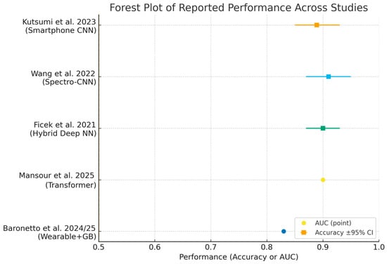 Background: This narrative review examines the role of artificial intelligence (AI) in bowel sound analysis for the diagnosis and management of inflammatory bowel disease (IBD). Inflammatory bowel disease (IBD), encompassing Crohn’s disease and ulcerative colitis, presents a significant clinical burden due to its unpredictable course, variable symptomatology, and reliance on invasive procedures for diagnosis and disease monitoring. Despite advances in imaging and biomarkers, tools such as colonoscopy and fecal calprotectin remain costly, uncomfortable, and impractical for frequent or real-time assessment. Meanwhile, bowel sounds—an overlooked physiologic signal—reflect underlying gastrointestinal motility and inflammation but have historically lacked objective quantification. With recent advances in artificial intelligence (AI) and acoustic signal processing, there is growing interest in leveraging bowel sound analysis as a novel, non-invasive biomarker for detecting IBD, monitoring disease activity, and predicting disease flares. This approach holds the promise of continuous, low-cost, and patient-friendly monitoring, which could transform IBD management. Objectives: This narrative review assesses the clinical utility, methodological rigor, and potential future integration of artificial intelligence (AI)-driven bowel sound analysis in inflammatory bowel disease (IBD), with a focus on its potential as a non-invasive biomarker for disease activity, flare prediction, and differential diagnosis. Methods: This manuscript reviews the potential of AI-powered bowel sound analysis as a non-invasive tool for diagnosing, monitoring, and managing inflammatory bowel disease (IBD), including Crohn’s disease and ulcerative colitis. Traditional diagnostic methods, such as colonoscopy and biomarkers, are often invasive, costly, and impractical for real-time monitoring. The manuscript explores bowel sounds, which reflect gastrointestinal motility and inflammation, as an alternative biomarker by utilizing AI techniques like convolutional neural networks (CNNs), transformers, and gradient boosting. We analyze data on acoustic signal acquisition (e.g., smart T-shirts, smartphones), signal processing methodologies (e.g., MFCCs, spectrograms, empirical mode decomposition), and validation metrics (e.g., accuracy, F1 scores, AUC). Studies were assessed for clinical relevance, methodological rigor, and translational potential. Results: Across studies enrolling 16–100 participants, AI models achieved diagnostic accuracies of 88–96%, with AUCs ≥ 0.83 and F1 scores ranging from 0.71 to 0.85 for differentiating IBD from healthy controls and IBS. Transformer-based approaches (e.g., HuBERT, Wav2Vec 2.0) consistently outperformed CNNs and tabular models, yielding F1 scores of 80–85%, while gradient boosting on wearable multi-microphone recordings demonstrated robustness to background noise. Distinct acoustic signatures were identified, including prolonged sound-to-sound intervals in Crohn’s disease (mean 1232 ms vs. 511 ms in IBS) and high-pitched tinkling in stricturing phenotypes. Despite promising performance, current models remain below established biomarkers such as fecal calprotectin (~90% sensitivity for active disease), and generalizability is limited by small, heterogeneous cohorts and the absence of prospective validation. Conclusions: AI-powered bowel sound analysis represents a promising, non-invasive tool for IBD monitoring. However, widespread clinical integration requires standardized data acquisition protocols, large multi-center datasets with clinical correlates, explainable AI frameworks, and ethical data governance. Future directions include wearable-enabled remote monitoring platforms and multi-modal decision support systems integrating bowel sounds with biomarker and symptom data. This manuscript emphasizes the need for large-scale, multi-center studies, the development of explainable AI frameworks, and the integration of these tools within clinical workflows. Future directions include remote monitoring using wearables and multi-modal systems that combine bowel sounds with biomarkers and patient symptoms, aiming to transform IBD care into a more personalized and proactive model. Full article