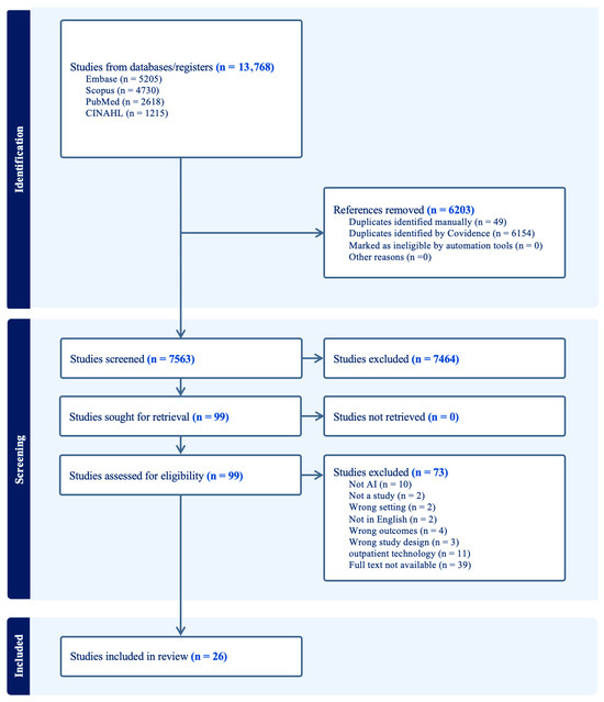 Background: Dysglycemia remains a persistent challenge in hospital care. Despite advances in outpatient diabetes technology, inpatient insulin management largely depends on intermittent point-of-care glucose testing, static insulin dosing protocols and rule-based decision support systems. Artificial intelligence (AI) offers potential to transform this care through predictive modeling and adaptive insulin control. Methods: Following Preferred Reporting Items for Systematic Reviews and Meta-Analyses Extension for Scoping Reviews (PRISMA-ScR) guidelines, a scoping review was conducted to characterize AI algorithms for insulin dosing and glycemic management in hospitalized patients. An interdisciplinary team of clinicians and engineers reached consensus on AI definitions to ensure inclusion of machine learning, deep learning, and reinforcement learning approaches. A librarian-assisted search of five databases identified 13,768 citations. After screening and consensus review, 26 studies (2006–2025) met the inclusion criteria. Data were extracted on study design, population, AI methods, data inputs, outcomes, and implementation findings. Results: Studies included ICU (N = 13) and general ward (N = 9) patients, including patients with diabetes and stress hyperglycemia. Early randomized trials of model predictive control demonstrated improved mean glucose (5.7–6.2 mmol/L) and time in target range compared with standard care. Later machine learning models achieved strong predictive accuracy (AUROC 0.80–0.96) for glucose forecasting or hypoglycemia risk. Most algorithms used data from Medical Information Mart for Intensive Care (MIMIC) databases; few incorporated continuous glucose monitoring (CGM). Implementation and usability outcomes were seldom reported. Conclusions: Hospital AI-driven models showed strong algorithmic performance but limited clinical validation. Future co-designed, interpretable systems integrating CGM and real-time workflow testing are essential to advance safe, adaptive insulin management in hospital settings. Full article