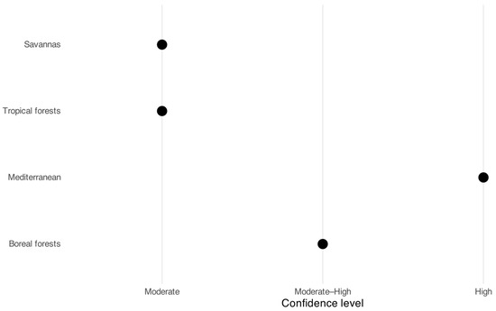 Wildfire regimes are undergoing rapid transformation under anthropogenic climate change, with major implications for biodiversity, carbon cycling, and ecosystem resilience. This systematic review synthesizes findings from 42 studies across global, continental, and regional scales to assess emerging patterns in fire frequency, intensity, and [...] Read more.