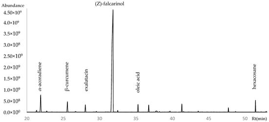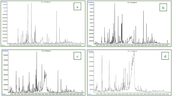 p < 0.05). Results: Despite extreme ambient pollution, heavy metal concentrations remained below pharmacopoeial limits (Pb < 0.1, Cd < 0.05, As < 0.01, Hg < 0.001 mg/kg), indicating effective biofiltration without toxic accumulation. Histochemistry confirmed the active synthesis of protective phenolics, flavonoids, and essential oils in the mesophyll, epidermis, and schizogenic cavities. GC-MS identified 72 compounds in the PER extract, 70 (the VAE), 72 in (MAE), and 46 in (UAE). The PER extract exhibited the highest relative abundance of bioactive terpenoids: α-cadinol (5.24%), α-muurolene (4.32%), and caryo-phyllene (2.20%). UAE extracts exhibited elevated 5-hydroxymethylfurfural (6.90%), indicating degradation. Antimicrobial testing revealed that PER produced the largest inhibition zone against
