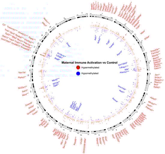 Neonatal hypoxic ischemic encephalopathy (HIE) is a common birth complication that can cause death or lifelong disabling conditions like cerebral palsy, epilepsy, and autism. It is well established that maternal infection and inflammation are significant risk factors for HIE but reasons for this increase in neurological risk to the offspring remain unknown. Inflammation or infection are associated with epigenetic changes and may contribute to the increased risk of neurodevelopmental disability in exposed offspring. Here, we analyzed and compared DNA methylation patterns in brain monocytes isolated from control, maternal immune activation (MIA), and an inflammation sensitized HIE (IS-HIE) CF-1 mouse model at postnatal day 7. We found that maternal inflammation induced significant methylation differences in neonates relative to control samples in both MIA and IS-HIE samples with no significant differences identified between the MIA and IS-HIE groups. MIA samples showed hypermethylation at loci involving craniofacial development and transcription factors important for regulating neurodevelopment and immune function. MIA samples also demonstrated significant hypermethylation at multiple mitochondrial genome CpGs. These findings suggest that maternal inflammation induces epigenetic alterations in fetal brain immune cells that are detectable in neonates. These changes may contribute to heightened neurodevelopmental risk in offspring following hypoxic injury, highlighting potential molecular pathways for future therapeutic targeting. Full article
