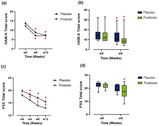Lactobacillus rhamnosus CECT 8361) or an identical placebo once daily for 12 weeks. In Part II, a pilot feasibility study, a subset of eight placebo non-responders from Part I received the heat-inactivated preparation of the same bacterial strains in a 6-week trial extension phase. For Parts I and II, the primary outcome was the change in the Hamilton Anxiety Rating Scale (HAM-A). Secondary outcomes included measures of mood (Beck Depression Inventory (BDI); Patient Health Questionnaire-9 (PHQ-9)), stress (state and trait anxiety inventory (STAI); Perceived Stress Scale (PSS)), sleep (Pittsburgh Sleep Quality Index (PSQI)), quality of life (36-item Short Form Survey (SF-36)), gastrointestinal symptoms (Gastrointestinal Symptom Rating Scale (GSRS)), salivary cortisol and microbiome modulation.