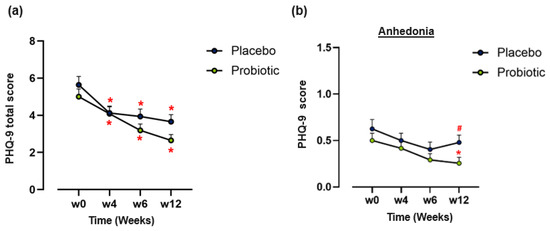 Part I, there were no significant effects of the live blend on the HAM-A, indicating that the primary endpoint was not met. In addition, no significant effects were seen on the STAI or PSS scores when compared to the placebo. However, participants consuming the live blend trended toward a reduction in total PHQ-9 scores compared to placebo (
