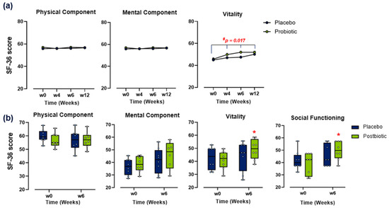 Conclusions: Supplementation with either the dual-strain live or inactivated formulations was associated with significant improvements in the vitality domain of the SF-36, whilst participants receiving the inactivated formulation demonstrated lower perceived stress and improved social functioning compared to baseline. Overall, the findings from this pilot study suggest that these two biotic consortia are well-tolerated and may be associated with improvements in measures of vitality in individuals with subclinical psychological symptoms. The subtle observations detected for stress and anhedonia suggest that further well-powered trials are needed to better characterize these findings, potentially in populations with greater baseline symptomatology.