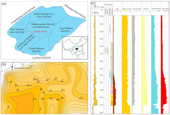 Deep shale gas reservoirs in the southern Sichuan Basin (Weiyuan area) exhibit strong heterogeneity and complex pore-fracture networks. Traditional reservoir evaluation methods struggle to accurately capture their microscale pore characteristics and fracability, thereby restricting efficient development and precise sweet spot prediction. Therefore, integrating digital core technology with geological analysis is essential to systematically quantify key reservoir parameters, including microscale pore structure, mineral composition, and brittleness characteristics. To clarify the controlling factors of high-quality deep shale gas reservoirs in the Weiyuan area and assess their exploration and development potential, we performed digital core analysis at micron to nanometer scales. Three-dimensional digital core models of representative deep shale gas wells were constructed. Integrating mineral composition, geochemical characteristics, and pore space features, we discuss the geological conditions for deep shale gas accumulation and the fracability of horizontal wells, and we delineate favorable shale reservoir zones. The results show that digital core technology enables quantitative and visual characterization of each sublayer of the Longmaxi Formation shale reservoir, including mineral types, laminae types, pore-throat structures, and organic matter distribution. From the Long 11-1 sublayer to the Long 11-4 sublayer, the pore-throat radius, total pore volume, total throat volume, connected pore-throat percentage, and coordination number all gradually decrease. In the eastern Weiyuan area, the siliceous components in deep shale gas reservoirs at the base of the Longmaxi Formation are primarily of both biogenic and terrigenous origin. Due to local variations in the sedimentary environment, terrigenous input contributes significantly to the total siliceous content in this region. Although the Long 11-1 sublayer of the Longmaxi Formation is lithologically classified as mud shale, its particle size and mineral composition more closely resemble those of clayey siltstone or argillaceous sandstone, suggesting considerable potential for reservoir space development. Typical wells in the eastern Weiyuan area exhibit distinct lithological characteristics, including coarser grain sizes, stronger hydrodynamic conditions during deposition, and abundant terrigenous clastic supply. The rigid framework formed by silt- to sand-sized particles effectively mitigates compaction, thereby facilitating the preservation of intergranular pores and microfractures. High organic matter abundance, appropriate thermal maturity, and a considerable thickness of high-quality shale ensured sufficient hydrocarbon supply. The main types of natural fractures are intergranular and grain-edge fractures formed by differences in sedimentary grain size, and bedding-parallel fractures generated by hydrocarbon generation overpressure. Based on reservoir mineral composition, pore characteristics, areal porosity, and pore size distribution identified via digital core analysis, the bottom 0–3 m of the Long 11-1 sublayer is determined to be the optimal target interval. By delineating the microscopic characteristics of the shale reservoir and predicting rock mechanical parameters, a fracability evaluation index was established from digital core simulations. This guides the selection of target layers in deep shale gas reservoirs and optimizes hydraulic fracturing design.