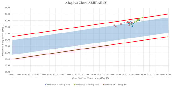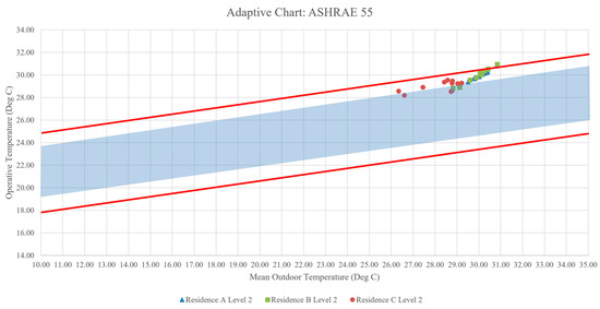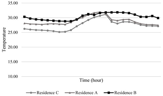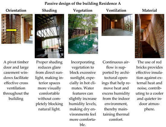 Hot and humid climates challenge conventional residential designs in maintaining thermal comfort, often leading to a heavy reliance on energy-intensive mechanical cooling. This dependence increases operational costs and contributes to elevated carbon emissions. In rapidly urbanising regions such as Selangor, Malaysia, climate-responsive and sustainable design strategies are urgently needed. This study evaluates the effectiveness of passive design strategies in enhancing indoor thermal comfort in naturally ventilated residential buildings using a three-case study methodology. Empirical field measurements were conducted to examine the influence of shading, building orientation, natural ventilation, and material selection on operative temperature Top and perceived comfort. The findings indicate that integrating passive strategies significantly improves indoor thermal conditions. Residence A, incorporating effective cross-ventilation and thermal mass, achieved the lowest operative temperature range of 28.5 °C to 29.8 °C, remaining within the 90% adaptive comfort band, with favourable air velocities between 0.45 and 0.65 m/s. In contrast, Residence B recorded higher operative temperatures from 29.5 °C to 31.2 °C, up to 1.4 °C warmer than Residence A, due to mean radiant temperatures exceeding 31 °C and a near-stagnant airflow below 0.10 m/s. Although Residence C demonstrated moderated radiant temperatures between 28.2 °C and 29.5 °C through effective envelope design, operative temperatures remained warm, ranging from 29.0 °C to 30.5 °C, due to severely restricted air velocities below 0.05 m/s. Overall, the results demonstrate that combinations of low air velocity (<0.10 m/s) and elevated mean radiant temperature (>30 °C) consistently drive operative conditions beyond the upper 90% adaptive comfort threshold, confirming ventilation effectiveness is the primary control factor of thermal acceptability in tropical residential environments. Full article