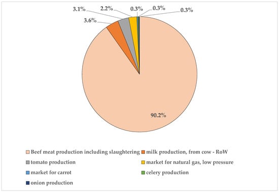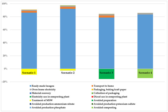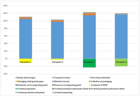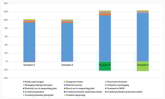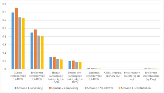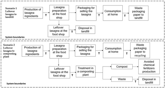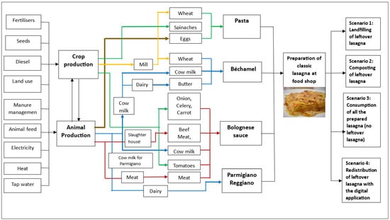 Food waste prevention and reduction are some of the important initiatives to improve the environmental sustainability of food systems. The global agenda of the United Nations provides a framework of targets and actions against food waste to which the European Union (EU), within the “Farm to Fork” strategy, aims to contribute. In this context, evaluating the impacts of food prevention measures is of great importance for supporting policies. This LCA analyzes the impact of classic lasagna from cradle to grave, through a generic food case study, prepared by food shops in Bologna (Northern Italy). Four scenarios are simulated, comparing the impacts of some end-of-life alternatives for the management of leftover lasagna (landfilling, composting, and redistribution with the digital application of the circular start-up “Squiseat”) versus the ideal scenario where no leftover lasagna is assumed. The results show that the preparation of classic lasagna generates non-negligible impacts on the analyzed LCA categories due to some of its ingredients, such as Bolognese sauce and Parmigiano Reggiano, and their associated production processes. For this reason, it is important to prevent classic lasagna leftovers from being wasted. The comparison of the four scenarios shows that redistribution is the scenario with the lowest impacts in all the investigated impact categories, including global warming (6.24 kg CO2 eq./kg of lasagna). The impacts are also lower than the ideal scenario due to the assumption of more sustainable means of transport. Normalization of characterized results confirms that Global Warming (GW) is only one of the most relevant impact categories in the life cycle of classic lasagna. The results have practical implications for raising awareness concerning the impacts of food production throughout the whole life cycle and the need for preserving the value of food by avoiding waste. Moreover, this study also shows that a reduction in the impact is a shared outcome that could be achieved by the joint efforts of all the stakeholders involved in the life cycle of food. In this regard, urban centers are confirmed to be important hubs of circular and more sustainable innovation. Finally, the LCA enriches the current research by investigating redistribution through the relationship of the food shop–virtual intermediate–consumer. So far, the prevalent focus of the LCA research allows us to assess the redistribution of collected surplus food from retailers and its delivery to the consumers by means of physical intermediaries and related infrastructures (e.g., food hubs, food banks, and food emporiums). Full article