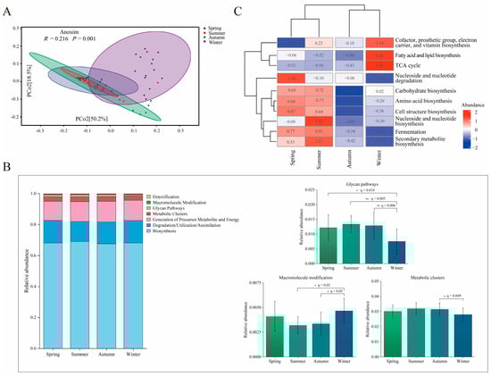 HMOX1), exhibiting a storage and homeostasis-oriented metabolic state. In the NC, L, and H groups, the expression of five genes—