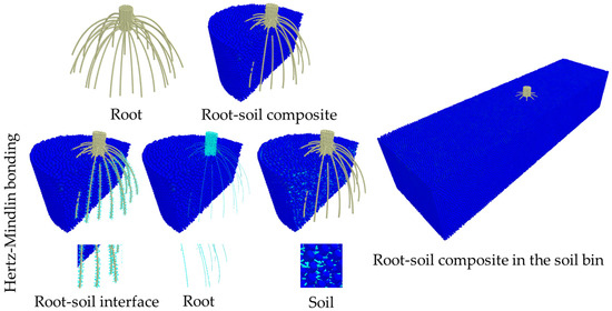 Cabbage stubble left in fields after harvest forms a mechanically complex stubble–soil composite that hinders subsequent tillage and crop establishment. Although the Discrete Element Method (DEM) is widely used to model soil-root systems, calibrated contact parameters for taproot-dominated vegetables like cabbage remain unreported. This study addresses this gap by calibrating a novel DEM framework that couples the JKR model and the Bonding V2 model to represent adhesion and mechanical interlocking at the stubble–soil interface. Soil intrinsic properties and contact parameters were determined through triaxial tests and angle-of-repose experiments. Physical pullout tests on ‘Zhonggan 21’ cabbage stubble yielded a mean peak force of 165.5 N, used as the calibration target. A three-stage strategy—factor screening, steepest ascent, and Box–Behnken design (BBD)—identified optimal interfacial parameters: shear stiffness per unit area = 4.40 × 108 N·m−3, normal strength = 6.26 × 104 Pa, and shear strength = 6.38 × 104 Pa. Simulation predicted a peak pullout force of 162.0 N, showing only a 2.1% deviation from experiments and accurately replicating the force-time trend. This work establishes the first validated DEM framework for cabbage stubble–soil interaction, enabling reliable virtual prototyping of residue management implements and supporting low-resistance, energy-efficient tillage tool development for vegetable production. Full article