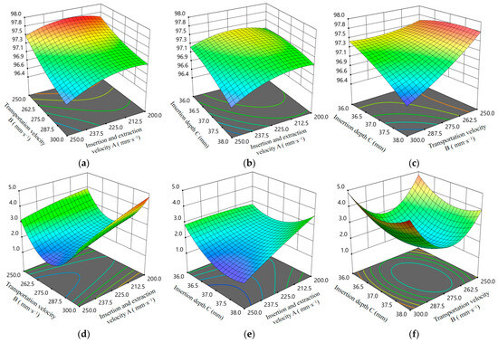 This paper aims to address the problem of the low success rate of seedling picking and throwing, and the high damage rate of pot seedling, caused by the unclear interaction and parameter mismatch between the seedling picking end effector and the pot seedling during the seedling picking and throwing process of automatic transplanters. An EDEM–RecurDyn coupled simulation was conducted, through which the disturbance of substrate particles in the bowl body during the inserting, extracting, and transporting processes by the seedling picking end effector was visualized and analyzed. The force and motion responses of the particles during their interaction with the seedling picking end effector were explored, and the working parameters of the seedling picking end effector were optimized. A seedling picking end effector using two fingers and four needles is taken as the research object, a kinematic mathematical model of the seedling picking end effector is established, and the dimensional parameters of each component of the end effector are determined. Physical characteristic tests are conducted on Shanghai bok choy pot seedlings to obtain relevant parameters. A discrete element model of the pot seedling is established in EDEM 2022 software, and a virtual prototype model of the seedling picking end effector is established in Recurdyn 2024 software. Through EDEM-Recurdyn coupled simulation, the force and movement of the substrate particles in the bowl body during the inserting, extracting, and transporting processes of the seedling picking end effector under different operating parameters were explored, providing a theoretical basis for optimizing the working parameters of the end effector. The inserting and extracting velocity, transporting velocity, and inserting depth of the seedling picking end effector were used as experimental factors, and the success rate of seedling picking and throwing, and the loss rate of substrate, were used as evaluation indicators; single-factor tests and three-factor, three-level Box–Behnken bench tests were conducted. Variance analysis, response surface methodology, and multi-objective optimization were performed using Design-Expert 13 software to obtain the optimal parameter combination: when the inserting and extracting velocity was 228 mm/s, the transporting velocity was 264 mm/s, the inserting depth was 37 mm, the success rate of seedling picking and throwing was 97.48%, and the loss rate of substrate was 2.12%. A verification experiment was conducted on the bench, and the success rate of seedling picking and throwing was 97.35%, and the loss rate of substrate was 2.34%, which was largely consistent with the optimized results, thereby confirming the rationality of the established model and optimized parameters. Field trial showed the success rate of seedling picking and throwing was 97.04%, and the loss rate of substrate was 2.41%. The error between the success rate of seedling picking and throwing and the optimized result was 0.45%, indicating that the seedling picking end effector has strong anti-interference ability, and verifying the feasibility and practicality of the established model and optimized parameters. Full article