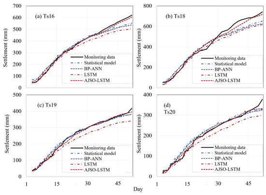 A seawall settlement is a critical concern in marine engineering, as an excessive or uneven settlement can undermine structural stability and diminish the capacity to withstand marine hydrodynamic actions such as storm surges, waves, and tides. Accordingly, accurate settlement prediction is vital to ensuring seawall safety. To address the lack of clustering methods that capture the time-series characteristics of monitoring points and the limitations of hyperparameter sensitivity of conventional LSTM models, this study proposes a hybrid model integrating Dynamic Time Warping-based Hierarchical Clustering (DTW-HC) and an Adaptive Joint Search Optimization-enhanced Long Short-Term Memory Model (AJSO-LSTM). First, DTW-HC is employed to cluster monitoring points according to their time series characteristics, thereby constructing a spatial panel data structure that incorporates both temporal evolution and spatial heterogeneity. Then, an AJSO-LSTM model is developed within each cluster to capture temporal dependencies and improve prediction performance by overcoming the weaknesses of a conventional LSTM. Finally, using seawall settlement monitoring data from a real engineering case, the proposed method is validated by comparing it with a statistical model, a back-propagation Neural Network (BP-ANN), and a conventional LSTM. Results demonstrate that the proposed model consistently outperforms these three benchmark methods in terms of prediction accuracy and robustness. This confirms the potential of the proposed framework as an effective tool for seawall safety management and long-term service evaluation. Full article