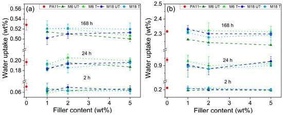 The present study explores the potential improvement of the mechanical properties of bio-based polyamide 11 (PA11) for demanding industrial application using natural and surface-treated mica at 1, 2 and 5 wt%. Suppressed water uptake by up to 4% was revealed with an unfavorable [...] Read more.