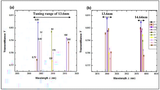 The development of tunable optical filters in the mid-infrared (MIR) region is crucial for a variety of applications, including environmental monitoring, medical diagnostics, and communication systems. This paper presents the design, fabrication, and characterization of a novel Twisted Liquid Crystal (TLC) electro-tunable optical cavity filter for the MIR region 3–5 μm. The filter is based on a Fabry–Perot interferometer configuration, which includes a polarization-independent TLC to achieve electrical control over the filter’s transmission characteristics. Two distinct filters were fabricated, differing in their substrate materials: silicon and glass. The silicon-based filter demonstrated an impressive 80% transmission with a tuning range of ∼13.6 nm and ∼14.64 nm in two separate bands, achieved by varying the applied voltage from 0 to 20 V. In contrast, the glass substrate filter exhibited a slightly higher transmission of 82% with tuning ranges of ∼10.5 nm and ∼7.2 nm across the spectral band when the voltage was adjusted from 0 to 27 V. Experimental validation showed a strong alignment between the simulations and results, demonstrating the feasibility of integrating tunable liquid crystals into mid-infrared optical cavities. This advancement highlights their potential for applications that require precise and dynamic control of the mid-infrared spectrum. Full article