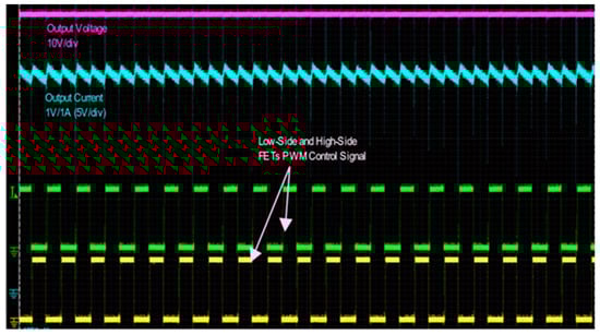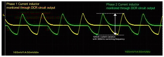 Power converters are essential for solar energy systems but achieving over 96% efficiency at 1 kW and 300 kHz with compact magnetic and EMC compliance remains challenging for high-power-density PV applications. This study presents the design, modeling, and experimental validation of a 1 kW two-phase interleaved boost converter operating from 12 V input to 48 V/20 A output, featuring a single EE32 Litz-wound coupled-core inductor with coupling coefficient k = −0.475 that reduces per-phase current ripple to just 120 mA (0.6% relative) at full load, a load-selective active zero-current switching (ZCS) circuit activated above 5 A threshold via DCR sensing to minimize switching losses without light-load penalties, and digital peak-current control with 2P2Z compensator implemented on an XMC4200 microcontroller, ensuring robust stability. Experimental results demonstrate peak efficiency of 98.6% at approximately 190 W load, full-load efficiency of approximately 96% with total losses limited to 40 W dominated by conduction rather than switching, thermal rise below 80 °C on key components, voltage regulation with less than 1% deviation down to 2 A minimum load, and full compliance with electromagnetic compatibility standards, including EN 55014-1/2 and EN 61000-4-2 ESD testing. The novel integration of selective ZCS, single-core magnetic, and high-frequency operation outperforms prior interleaved boost converters, which typically achieve 94–97% peak efficiency at lower switching frequencies of 20–100 kHz using multiple inductors or complex always-active resonant networks, making this solution particularly suitable for compact photovoltaic micro-converters, electric vehicles, and industrial power supplies requiring high efficiency, reliability, and regulatory compliance. Full article