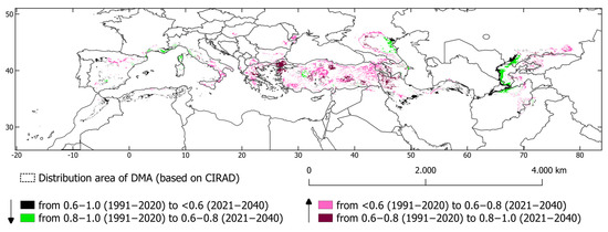 The Moroccan locust (Dociostaurus maroccanus) is one of the most economically significant locust species in the Caucasus and Central Asia. In the past, the Mediterranean region also experienced severe damage to crops and pastures, until widespread grassland conversion to cropland began in the second half of the 20th century. However, climate change, environmental shifts, land-use changes, cropland abandonment, and overgrazing are likely to alter the spatial distribution and outbreak patterns of this pest. Understanding potential changes and geographic shifts is essential for proactive pest management, including effective monitoring and control strategies. In this study, we apply Ecological Niche Modelling (ENM) using 12 machine learning algorithms, historical survey data covering the species’ full distribution range, and relevant abiotic variables to identify the most suitable areas for potential mass breeding during 1991–2020 and the near future (2021–2040), based on the “middle-of-the-road” Shared Socioeconomic Pathway (SSP2-4.5) scenario. Our results indicate significant regional shifts. Notably, breeding suitability is projected to increase in parts of Greece, Turkey, Armenia, Georgia, Kyrgyzstan, and Tajikistan. In contrast, countries such as Turkmenistan, Afghanistan, Pakistan, and Spain are likely to experience a decline in optimal breeding areas. The forecast results support field observations of a geographical shift northward and toward higher altitudes. Additionally, higher temperatures in suitable areas suggest more drought-like conditions, which typically promote locust population explosions and outbreaks. If left unaddressed, such outbreaks can cause severe economic damage to affected regions. Full article