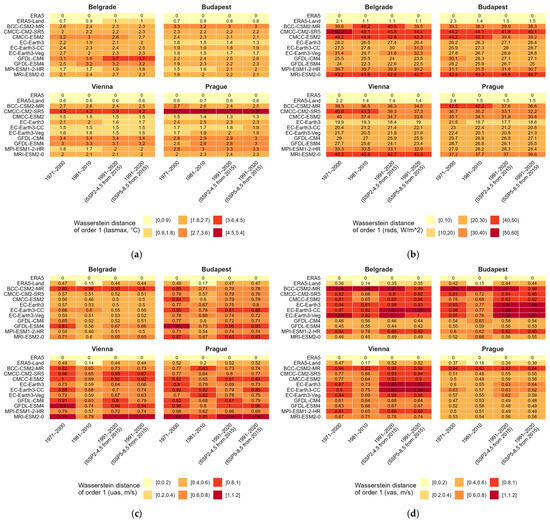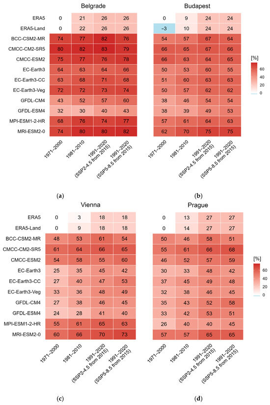 In the last two decades, the utilization of solar energy has been growing rapidly worldwide, mainly due to the increasing adoption of photovoltaic (PV) systems. Since solar energy is one of the most weather-dependent renewable energy sources, an increasing number of meteorological studies have focused on PV potential (PVpot) and its projected changes under global warming. GCM outputs disseminated through the Coupled Model Intercomparison Project (CMIP) are often applied in energy-related urban climate studies, as they can be downscaled either statistically or dynamically. It is essential to evaluate raw (not bias-corrected) GCM data, which helps to determine the uncertainties in the GCM simulations before downscaling. Despite their coarse resolution, some studies even rely directly on the GCM grid cell time series to represent individual locations. Accordingly, this study evaluates 10 CMIP Phase 6 (CMIP6) GCMs with respect to some atmospheric variables (air temperature, solar radiation, and wind speed, which are the primary drivers of PVpot) in four lowland grid cells representing four major urban areas in Central and Southeast Europe: Belgrade (Serbia), Budapest (Hungary), Vienna (Austria), and Prague (Czechia). The use of solar energy has increased significantly in most of these regions in recent years; however, it remains less studied than in Western Europe. ERA5 reanalysis is used as the reference dataset. We analyzed the boreal summer (JJA) days of three overlapping 30-year time periods: 1971–2000, 1981–2010, and 1991–2020. Our main findings are as follows: GCMs tend to overestimate solar radiation and underestimate maximum near-surface air temperature relative to ERA5 in all time periods and in all the four urban areas, which leads to a significant overestimation of the number of JJA days with high PVpot (PVpot,90). PVpot,90 is increasing from 1971–2000 to 1991–2020 in the vast majority of GCMs, in all the four regions. EC-Earth3 and its different configurations (EC-Earth3-Veg, EC-Earth3-CC) are considered the most accurate GCMs relative to ERA5. Full article