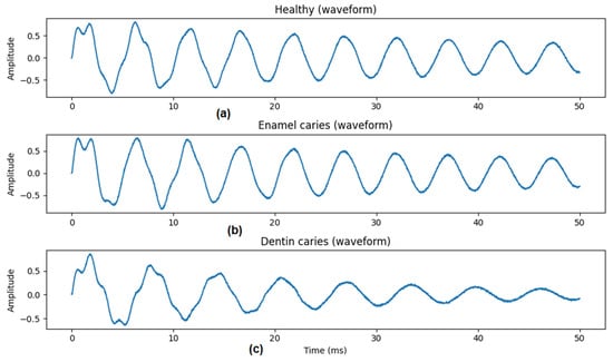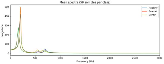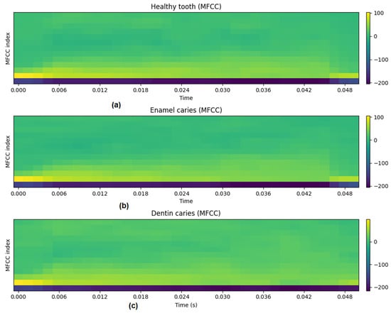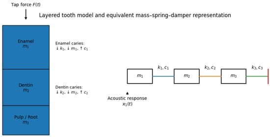 Background: Early detection of dental caries is essential for effective oral health management. Current diagnostic workflows rely heavily on radiographic imaging, which involves infrastructure requirements, workflow coordination, and resource considerations that may limit frequent use in high-throughput or resource-constrained settings. These contextual factors motivate exploration of adjunct screening concepts that could support front-end triage decisions within existing care pathways. This study evaluates, in simulation, whether modeled tooth-percussion response signals contain sufficient discriminative information to justify further translational and managerial investigation. Implementation costs, workflow optimization, and economic outcomes are not evaluated directly; rather, the objective is to assess whether the technical preconditions for a potentially scalable screening concept are satisfied under controlled in silico conditions. Methods: An in silico model of tooth percussion was developed in which enamel, dentin, and pulp/root structures were represented as a simplified layered mechanical system. Impulse responses generated from simulated tapping were used to compute the modeled surface-vibration response (enamel-layer displacement), which served as a proxy for a measurable percussion-related signal (e.g., contact vibration), rather than a recorded acoustic waveform. Carious conditions were simulated through depth-dependent reductions in stiffness and effective mass and increases in damping to represent enamel and dentin demineralization. A synthetic dataset of labeled simulated signals was generated under varying structural parameters and measurement-noise assumptions. Machine-learning models using Mel-frequency cepstral coefficient (MFCC) features were trained to classify healthy teeth, enamel caries, and dentin caries at a screening (triage) level. Results: Under baseline simulation conditions, the classifier achieved an overall accuracy of 0.97 with balanced macro-averaged F1-score (0.97). Misclassifications occurred primarily between healthy and enamel-caries categories, whereas dentin-caries cases were most consistently identified. When measurement noise and structural variability were increased, performance declined gradually, reaching approximately 0.90 accuracy under the most challenging simulated scenario. These results indicate that discriminative information is present within the modeled signals at a screening (triage) level, meaning that higher-risk categories can be distinguished probabilistically rather than with definitive diagnostic certainty. Sensitivity and specificity trade-offs were not optimized in this study, as the objective was to assess separability rather than to define clinical decision thresholds. Conclusions: Within the constraints of the in silico model, simulated tooth-percussion response signals demonstrated discriminative patterns between healthy, enamel caries, and dentin caries categories at a screening (triage) level. These findings establish technical plausibility under controlled simulation conditions and support further investigation of percussion-based screening as a potential adjunct to clinical assessment. From a healthcare management perspective, the present results address a prerequisite question—whether such signals contain sufficient information to justify translational research, rather than demonstrating workflow optimization, cost reduction, or system-level impact. Clinical validation, threshold optimization, and implementation studies are required before managerial or operational benefits can be evaluated. Full article