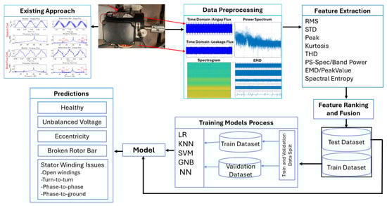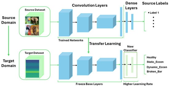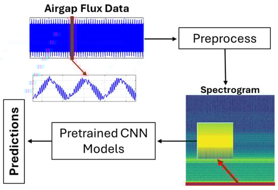 This paper presents new techniques for electric machine diagnostics that combine advanced signal processing and artificial intelligence (AI)-based techniques using magnetic flux measurements acquired under various operating conditions. Developing an effective electric machine diagnostics tool is paramount for increased industrial productivity and extending the service life of the machine. The existing diagnostic tools face issues, including false indication of faults using classical methods, and the proposed data-driven methods based on machine learning lack transferability of model knowledge on an unseen dataset from different motor types or power ratings due to structural differences. To overcome these diagnostic drawbacks of statistical ML classifiers and classical approaches, innovative feature selection methods were employed in this work to preprocess the measured magnetic flux into a spectrogram image, and the transfer learning (TL) technique was applied to fine-tune convolution neural networks (CNNs) ImageNet pretrained models. The experimental results show the trained statistical ML classifiers and traditional CNN performance on unseen BU data and on the external data, and the performance demonstrated a lack of generalization on external datasets of different power ratings or structures. Models with such drawbacks cannot be used for developing effective diagnostic systems. The TL technique was employed on different deep CNN ImageNet pretrained models with spectrogram images as inputs to the deep CN network. This approach demonstrated an advanced and improved electric machine diagnostic system that addresses the drawbacks of the current ML-based diagnostic systems. The generalized model developed using CNN ResNet50 outperformed other deep CNN ImageNet models in correctly diagnosing faults on both the dataset generated from the authors’ lab and on an external dataset of a different machine from another research lab. Full article