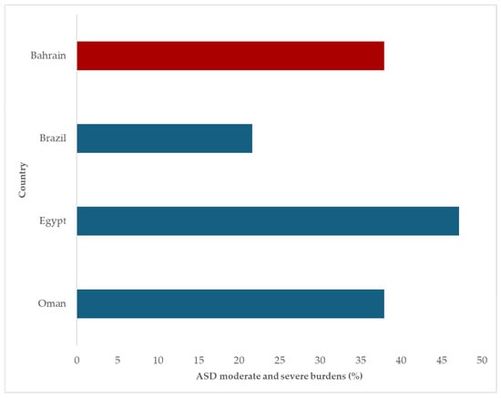 Background: This study aimed to estimate the prevalence and associated demographic factors of autism spectrum disorder (ASD) in children aged 3 to 6 years in Bahrain, as well as to identify co-occurring developmental disorders. Methodology: The study sample comprised 500 children who attended eight health centers across four governorates (Group A) in Bahrain. A second group (Group B) consisted of all children who completed their diagnosis at the Child and Adolescent Psychiatric Unit for ASD from June 2023 to May 2024 to identify associated developmental disorders (n = 232). Group A mothers were interviewed using the M-CHAT-R. For Group B, we used children’s files, the General Intelligence Scale (Stanford-Binet), the M-CHAT-R, the CARS, Conners’ Form, and the Zarit Burden Interview to assess family burden. Additionally, a file review was conducted to determine the presence of intellectual disability (ID) in Group B cases. The Conner-3 Short Forms Test was administered to all cases aged 6 years or older (n = 64), and family burden was assessed using the Zarit Burden Interview Scale for reachable cases (n = 176). Results: Group A findings indicated an overall screen-based/at risk prevalence of ASD of 2.6%, with a higher prevalence in males (1.6%) compared to females (1%). In Group B, there was a78% prevalence of ID and a 17.2% prevalence of attention-deficit/hyperactivity disorder (ADHD). The study also found that the impact of having a child with ASD on the family varied based on the nature and severity of the disorder or disability, with moderate to severe burden reported at approximately 38%. Conclusions: The prevalence of ASD among young children was notably high, particularly among males. The most common comorbidities were ID followed by ADHD. The family burden associated with ASD was significant, with more than one third reporting moderate to severe burden. These data are essential for informing health education and social service planning. Full article