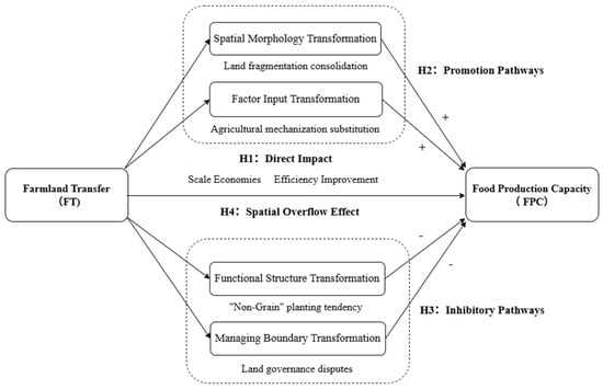 As a crucial pathway for optimizing land factor allocation, farmland transfer plays a pivotal role in implementing the “storing grain in land and technology” strategy and safeguarding national grain security. Based on panel data from 30 provinces in China spanning 2009 to 2023, this study employs a two-way fixed effects model and a Spatial Durbin Model (SDM) to systematically examine the mechanisms, heterogeneity, and spatial spillover effects of farmland transfer on grain production capacity. The results indicate that: (1) Farmland transfer significantly enhances grain production capacity, and this conclusion remains robust after multiple robustness and endogeneity tests. (2) Farmland transfer boosts grain production capacity by promoting cultivated land connectivity and facilitating the substitution of machinery for labor; however, the accompanying non-grain tendency and land governance disputes exert inhibitory effects on capacity release. (3) Transfers to farming households and professional cooperatives, as well as the adoption of leasing and informal exchange arrangements, exhibit the strongest positive effects on production capacity, and the scale-efficiency gains of farmland transfer are particularly pronounced in major grain-consuming areas. (4) Improvements in a region’s farmland transfer level drive the enhancement of grain production capacity in neighboring regions through the diffusion of management experience and the sharing of social services. This study provides empirical evidence and policy insights to optimize farmland transfer mechanisms and safeguard food security. Full article