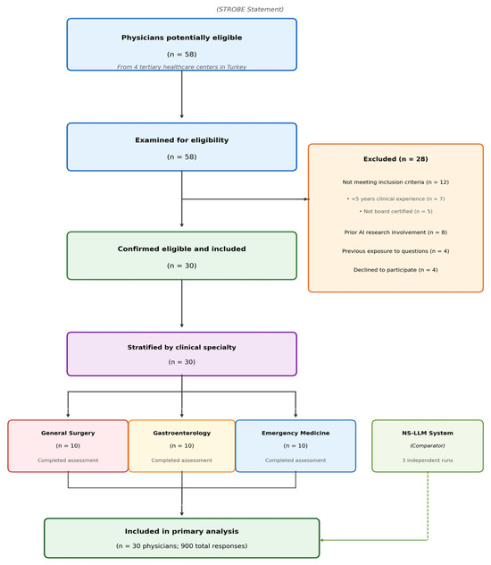Methods: This multi-center cross-sectional study included 30 case-based questions covering acute cholecystitis and gallbladder diseases, stratified across eight predefined disease categories: acute calculous cholecystitis (n = 6), acute acalculous cholecystitis (n = 2), complicated cholecystitis including gangrenous, emphysematous, and perforated variants (n = 5), chronic cholecystitis and biliary colic (n = 4), gallbladder polyps and adenomyomatosis (n = 3), Mirizzi syndrome (n = 2), gallbladder carcinoma (n = 4), and post-cholecystectomy complications (n = 4). Questions were categorized into diagnosis (n = 10), treatment (n = 10), and complications/prognosis (n = 10). Gold standard answers were established through consensus by an expert panel consisting of two senior general surgery expert clinicians and one senior emergency medicine expert clinician, each with more than 20 years of clinical experience, utilizing the Tokyo Guidelines 2018 (TG18) as the reference standard for diagnostic criteria, severity grading, and management recommendations. The expert panel achieved unanimous consensus on all 30 gold standard answers. All responses were cross-referenced against the primary TG18 publications to ensure guideline-based rather than solely opinion-based reference standards. This consensus-based, guideline-anchored approach is consistent with established methodologies for gold standard establishment in AI diagnostic accuracy studies. Performance of a neuro-symbolic LLM system orchestrated via LangGraph v1.0 was compared against 10 general surgery specialists, 10 emergency medicine physicians, and 10 gastroenterology specialists from four tertiary centers in Turkey. The neuro-symbolic system incorporated the Tokyo Guidelines 2018 (TG18) as its symbolic knowledge base for diagnostic criteria, severity grading, and management algorithms.