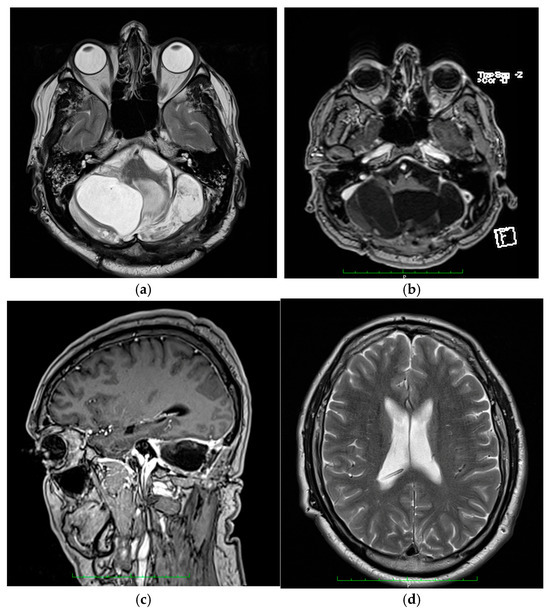 Case Presentation: We report the case of an 80-year-old woman who initially presented with progressive ipsilateral limb-trunk ataxia, impaired smooth pursuit eye movement, and rebound nystagmus, but preserved pyramidal and sensory functions. Her quantitative bedside assessments included some of the components of the Scale for the Assessment and Rating of Ataxia (SARA), and a National Institute of Health Stroke Scale (NIHSS) score of 3. These findings indicated dysfunction of the left neocerebellar hemisphere and possible dentate nucleus involvement. The patient’s magnetic resonance imaging (MRI) results demonstrated an expansive mass with surrounding vasogenic edema and marked compression and narrowing of the exits of the fourth ventricle which placed the patient’s CSF pathways at significant risk of occlusion, while the aqueduct and inlets were patent. She then underwent a left lateral suboccipital craniectomy with controlled arachnoidal CSF release, preservation of venous drainage routes, subpial corticotomy oriented along the lines of the folia, stepwise internal debulking, and careful protection of the cerebellar peduncles and dentate nucleus. Dural reconstruction utilized a watertight pericranial graft to restore the cisternal compartments. Her post-operative intensive care unit (ICU) management emphasized optimal venous outflow, normoventilation, and early mobilization. Histopathology confirmed the presence of metastatic carcinoma, and staging suggested that the most likely source of the primary tumor was the lungs. Immediately post-operation, computed tomography (CT) imaging revealed a smooth resection cavity with open foramina of Magendie and Luschka, intact contours of the brain stem, and no evidence of bleeding or hydrocephalus. The patient’s neurological deficits, including dysmetria, scanning dysarthria, and ataxic gait, improved gradually during the first 48 h post-operatively. Upon discharge, the patient demonstrated an improvement in her limb-kinetic subscore on the International Cooperative Ataxia Rating Scale (ICARS) and demonstrated independent ambulation. At two weeks post-operation, CT imaging revealed decreasing edema and stable cavity size, and the patient’s modified Rankin scale had improved from 3 upon admission to 1. There were no episodes of CSF leakage, wound complications, or new cranial nerve deficits. A transient post-operative psychotic episode that was likely secondary to her underlying Alzheimer’s disease was managed successfully with short-course pharmacotherapy.