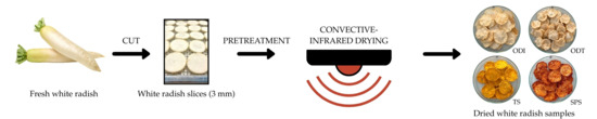 The Effect of Pretreatments and Infrared Drying on the Quality of White Radish Slices