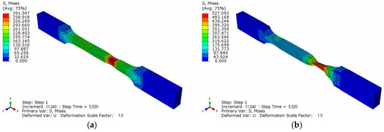 The mechanical behavior, the necking process and the geometry of the neck in rectangular cross-section single-crystal copper specimens under macroscopic uniaxial large-strain tensile conditions were numerically simulated and analyzed using the classical Chaboche combined hardening model and the crystal plasticity constitutive model including [...] Read more.
