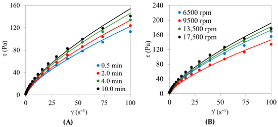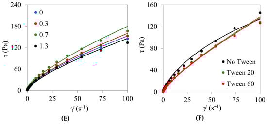 The rheological behavior of chitosan–vanillin crosslinked olive oil-in-water emulsions (Φ = 0.52) was investigated to identify formulation and processing conditions suitable for designing oleogel precursors. The effects of homogenization conditions, reaction temperature, chitosan concentration, vanillin-to-chitosan molar ratio, and non-ionic surfactants were systematically evaluated. Surfactant-free emulsions exhibited a structured, gel-like response and non-thixotropic shear-thinning flow, which was well described by the Herschel–Bulkley model within the investigated shear-rate range. Optimal homogenization (4 min, ≥9500 rpm) refined the microstructure without compromising stability. Increasing the reaction temperature to 55 °C, the chitosan concentration to ~0.9% (w/w), and the vanillin-to-chitosan molar ratio to 0.7 maximized yield stress, consistency, and thermal robustness, consistent with enhanced network formation. In contrast, Tween® surfactants produced divergent responses, increasing small-amplitude oscillatory stiffness while markedly reducing resistance under steady shear, likely due to surfactant-driven interfacial displacement. Among the tested surfactants, Tween® 20 provided the highest thermal stability. Overall, these results define processing and formulation windows to obtain surfactant-free, structured emulsions with improved structuring performance, supporting their use as effective templates for olive oil oleogel development. Full article