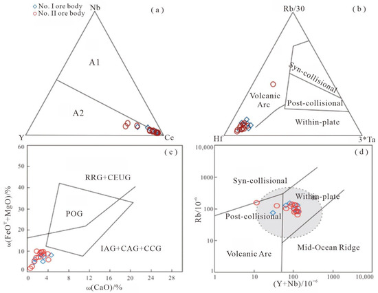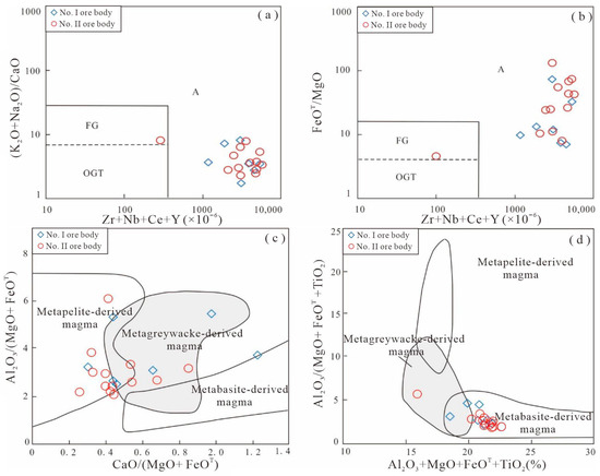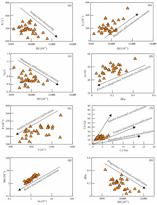 5 (0.13%–0.20%). They formed through a relatively high degree of partial melting at approximately 766 °C (zircon saturation temperatures), a process influenced by biotite dehydration reactions, with minor contributions from mantle-derived materials. In contrast, the G2–G4 granite series exhibits more typical peraluminous S-type granite features, such as high Al